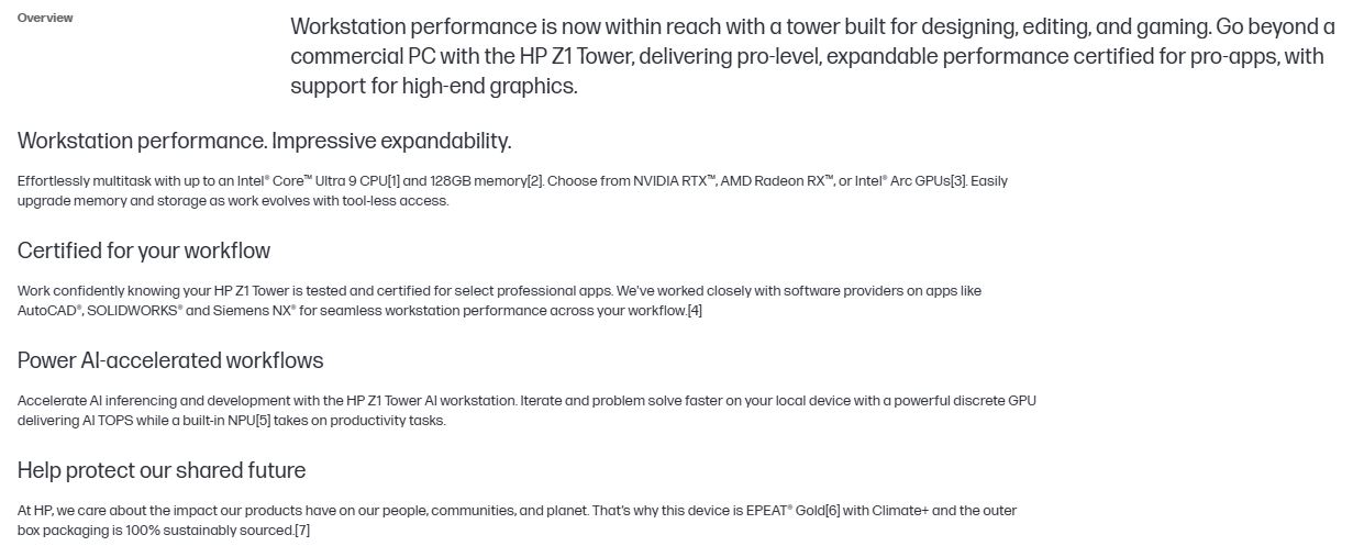 Sustainable impact specifications Bulk packaging available; Molded paper pulp cushion inside box is 100% sustainably sourced and recyclable; 10% ITE-derived closed loop plastic; 80 Plus® Platinum power supplies available; Contains at least 60% post-consumer recycled plastic; Outside box and corrugated cushions are 100% sustainably sourced or recyclable [19,20,21,29]